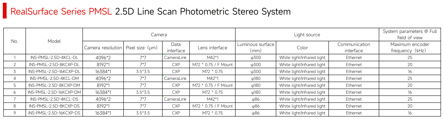 PMSL-2.5D 라인 스캔 광도 스테레오 시스템