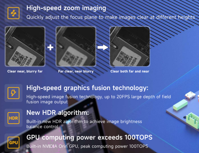 LDOF "Large Depth of Field" 액체 렌즈를 사용하여 초점을 변경한 여러 이미지를 고속으로 합성하여 최상의 초점을 제공하는 기술입니다.