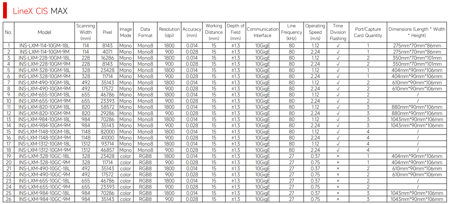 LineX CIS MAX는 압도적인 기술력을 바탕으로 기존 한계를 뛰어넘는 고성능 라인 스캔 카메라입니다. 10GigE 인터페이스와 다양한 스캔 폭을 제공하여 다양한 산업 환경에 최적화된 솔루션을 제공합니다.